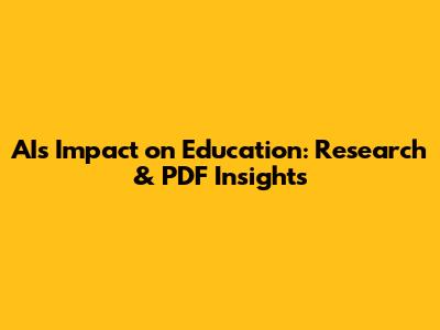 AI's Impact On Education: Research & PDF Insights