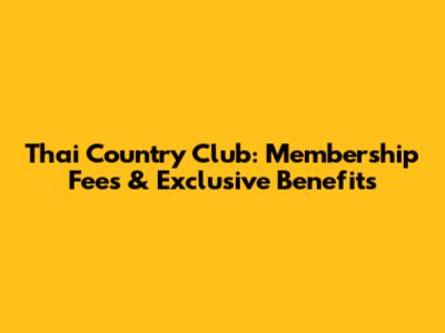 Thai Country Club: Membership Fees & Exclusive Benefits